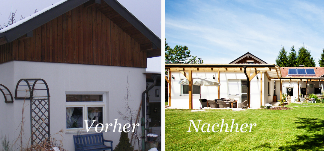 Zum bestehenden Bungalow wurde ein Zubau mit Flachdach von unserem Pichler Holzbau Team in Holzriegelbauweise errichtet.