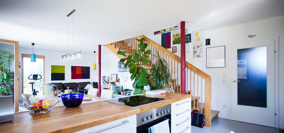Für die Familie SW haben wir nicht nur das Fertighaus, sondern auch die Holzstiege und passend dazu ein Holzgeländer errichtet.
